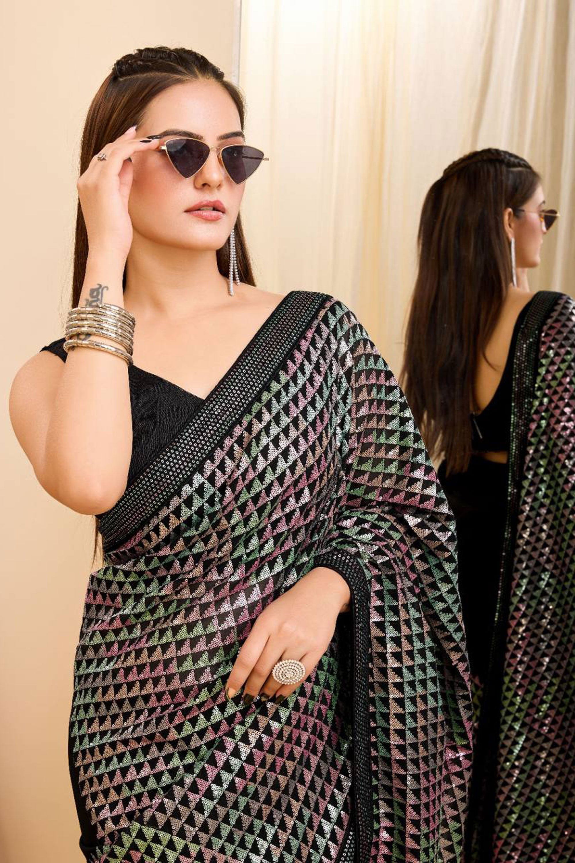 Heavy Georgette Fabric Sequins Work On Black Color Saree