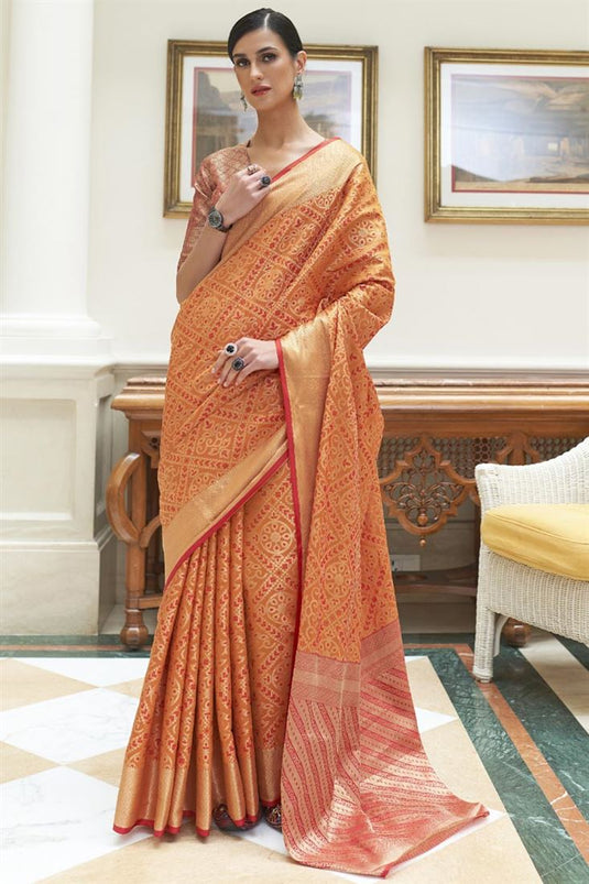 Imperial Orange Color Art Silk Fabric Saree With Weaving Work