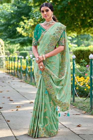 Imperial Sea Green Color Art Silk Fabric Saree With Border Work