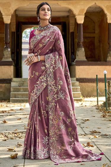 Imperial Wine Color Silk Saree With Heavy Embroidered Blouse