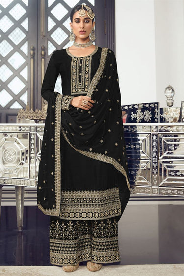 Imposing Art Silk Fabric Black Color Palazzo Suit With Embroidered Work