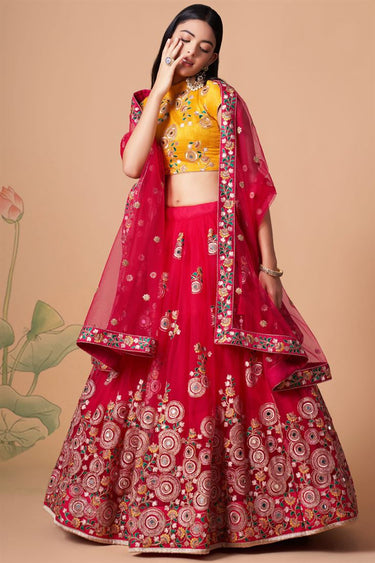 Incredible Sangeet Wear Net Fabric Rani Color Lehenga Choli