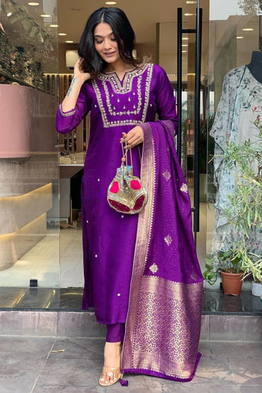 Ingenious Embroidered Purple Color Viscose Fabric Readymade Salwar Suit