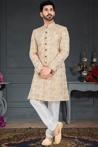 Intriguing Cream Color Italian Indo Western In Jacquard Fabric
