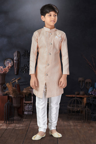Jacquard Fabric Peach Color Traditional Wear Boys Readymade Indo Western