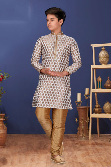 Jacquard Silk Fabric Off White Color Occasion Wear Readymade Boys Kurta Pyjama
