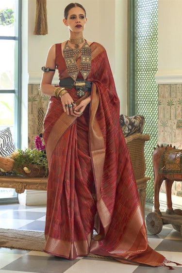 Kalki Koechlin Red Color Organza Fabric Glittering Saree