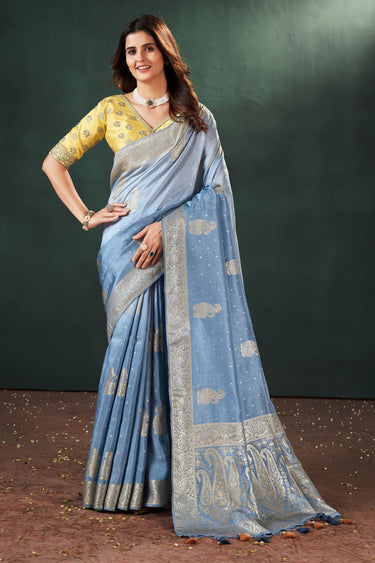 Komal Vora Glamorous Sky Blue Color Weaving Designs Silk Saree