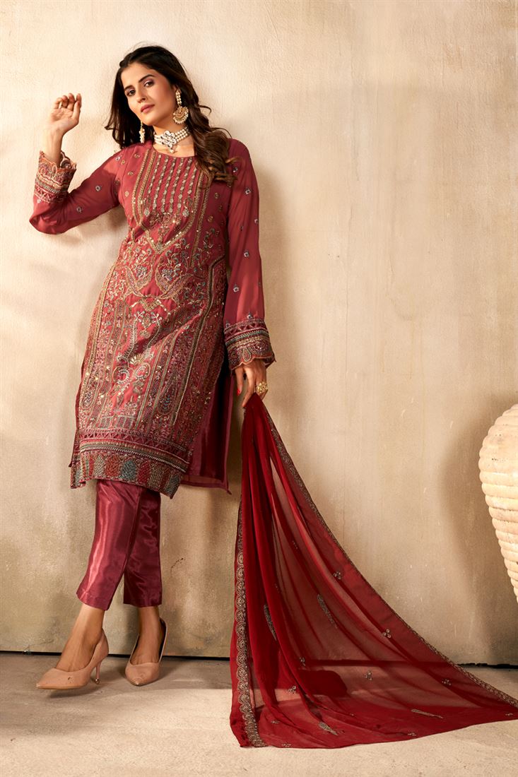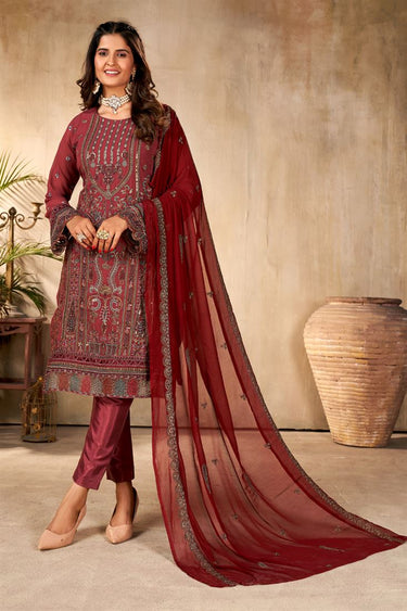 Whether you're attending a wedding, festival, or any special function, our Maroon Salwar Suit is the ideal choice. Its versatile design ensures that you can effortlessly transition from day to night with ease.