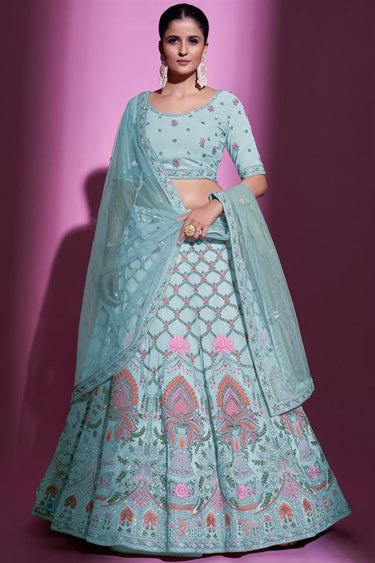 Komal Vora Sky Blue Color Georgette Fabric Magnificent Lehenga