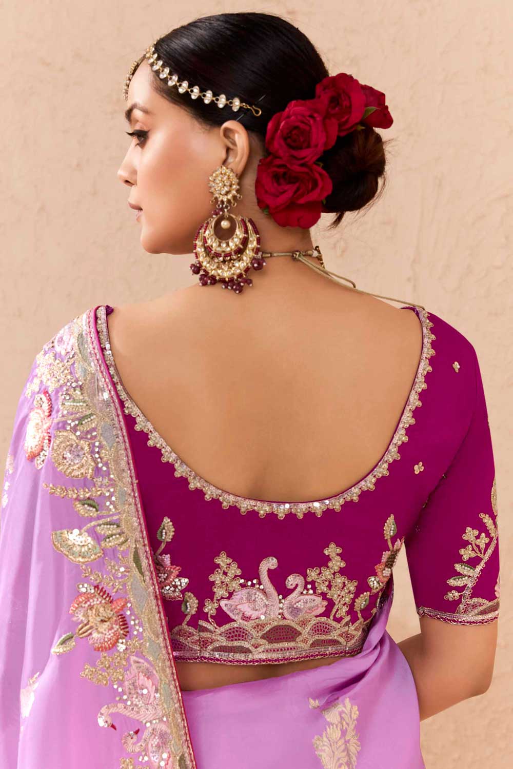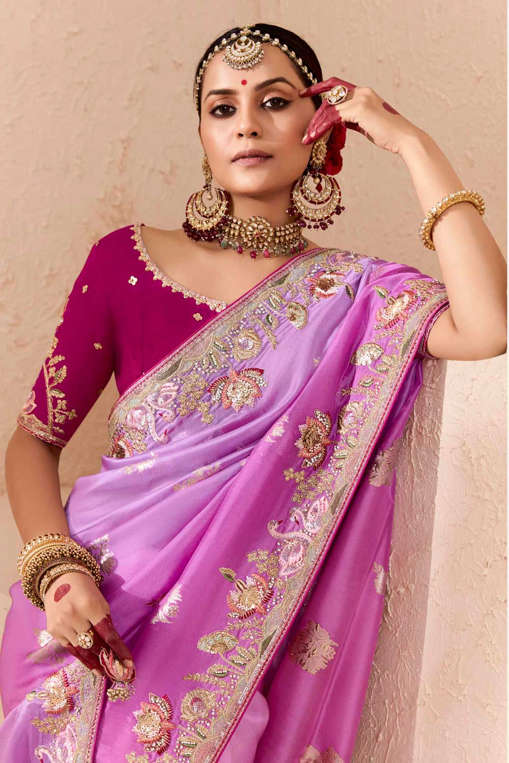 Lavender and Pink Color Exquisite Weaving Work Bember Silk Saree