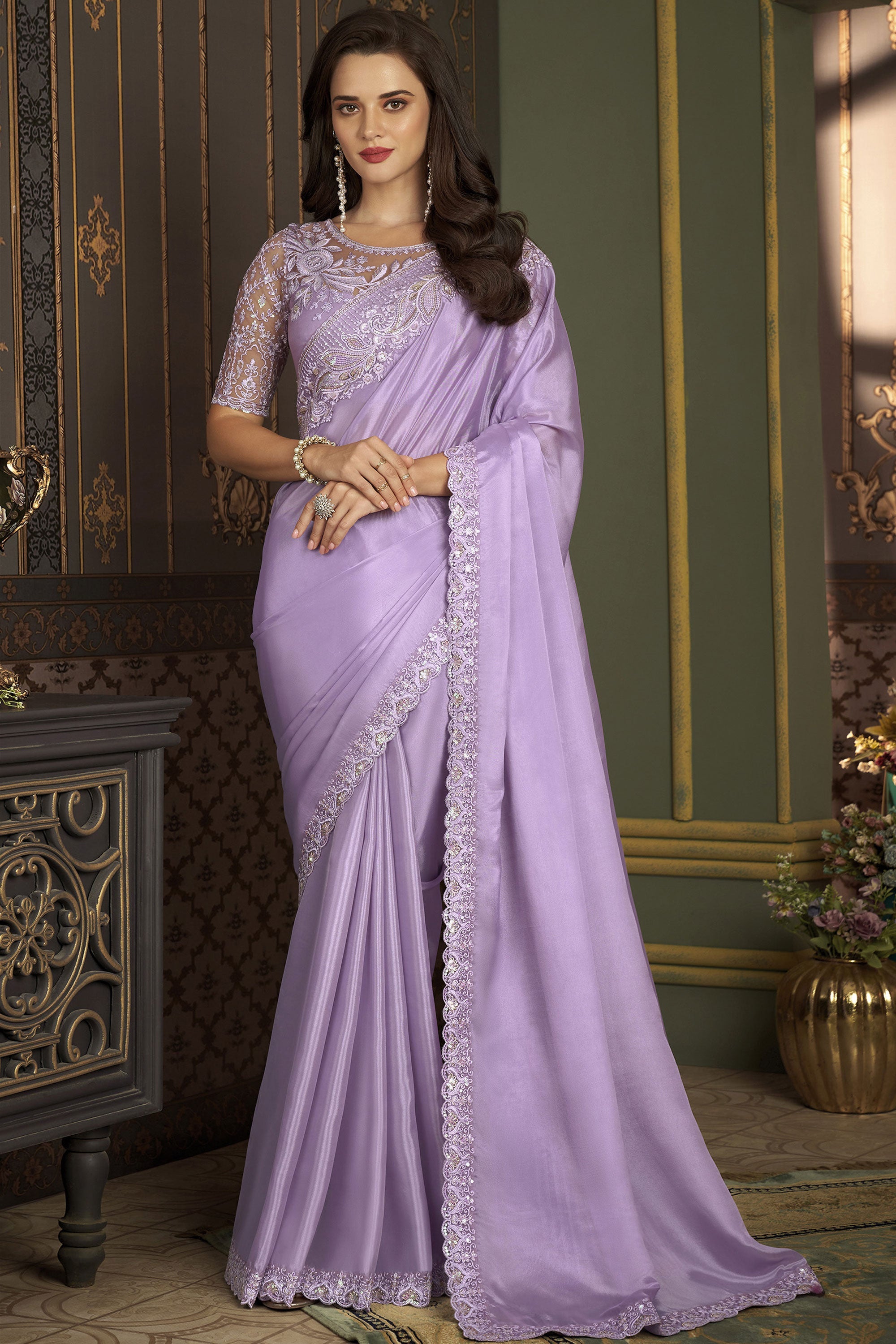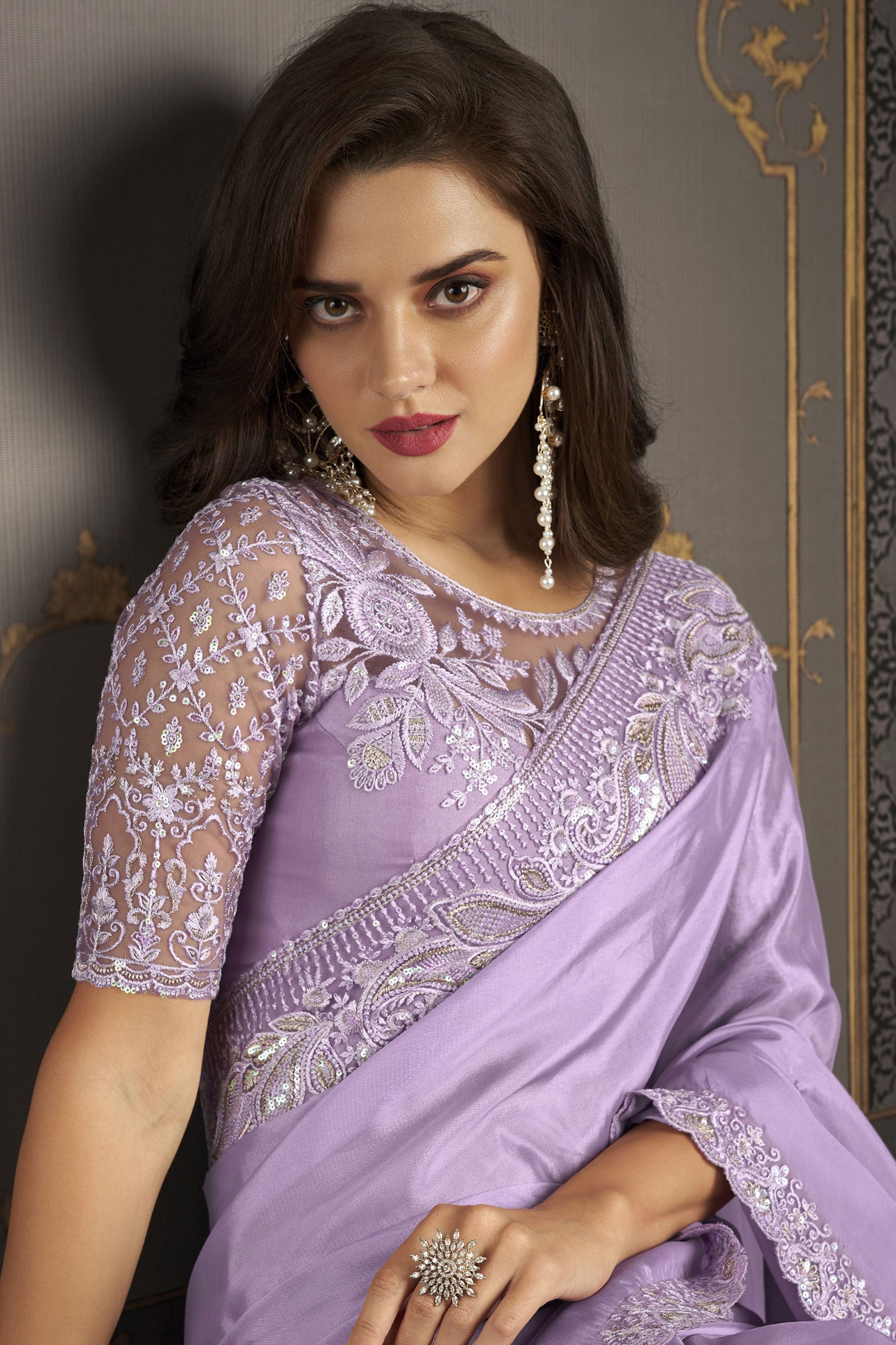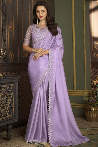 Lavender Color Art Silk Fabric Engaging Sangeet Wear Saree With Border Work