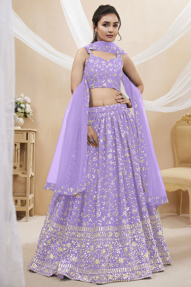 Lavender Color Embroidered Sangeet Wear Lehenga Choli In Georgette Fabric