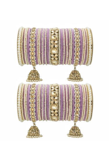 Lavender Color Engrossing Jhumki Bridal Set With Pearl Kadas In Alloy Material
