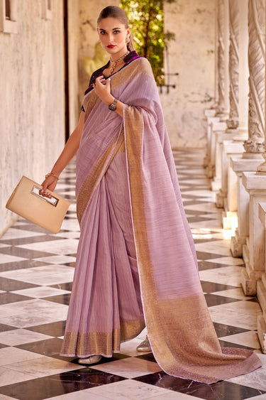Lavender Color Pleasant Fancy Linen Saree With Velvet Blouse