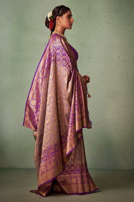 Lavender Color Sober Weaving Work Saree In Art Silk Fabric