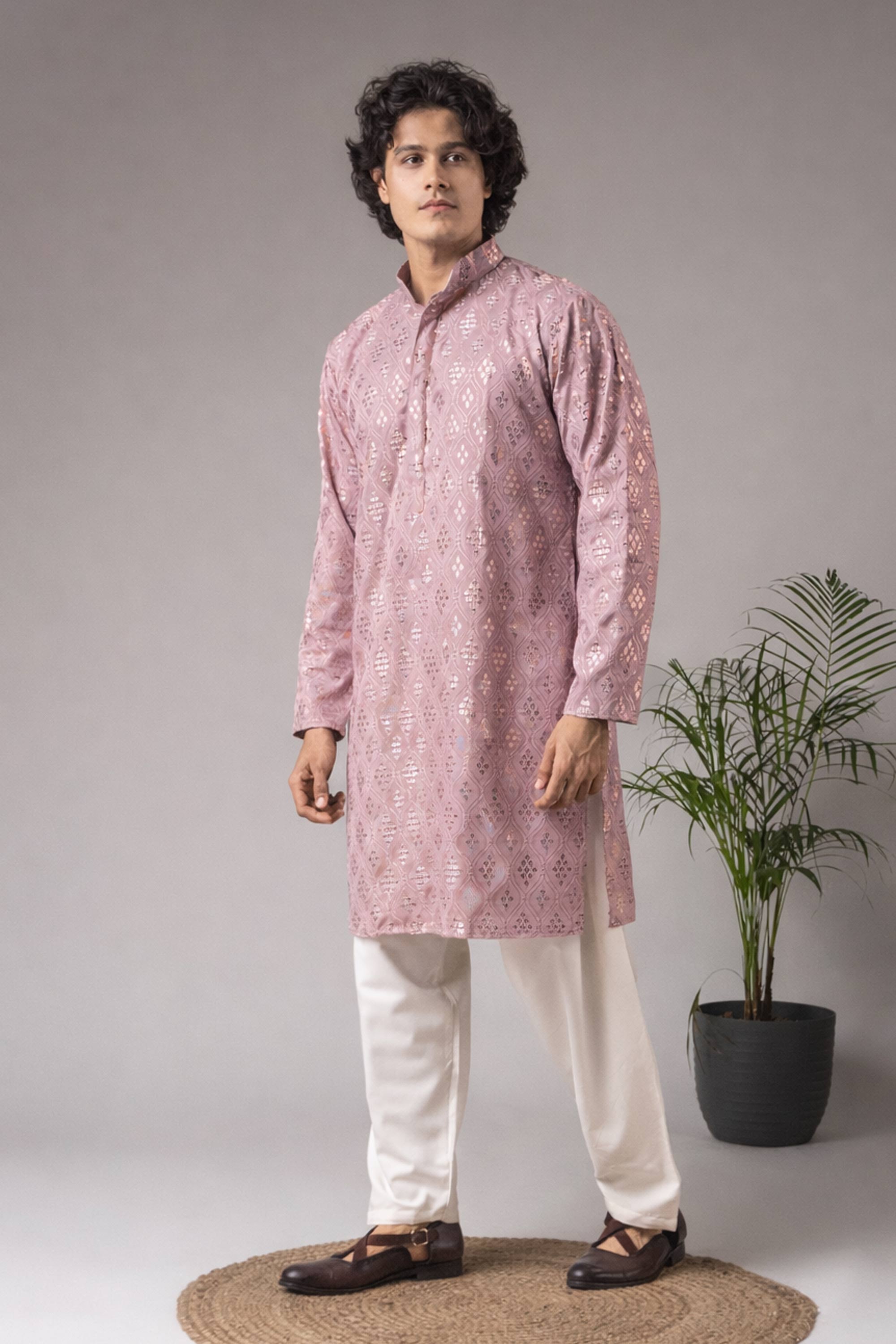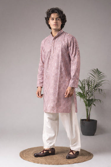 Lavender Function Wear Viscose Embroidered Readymade Kurta Pyjama For Men