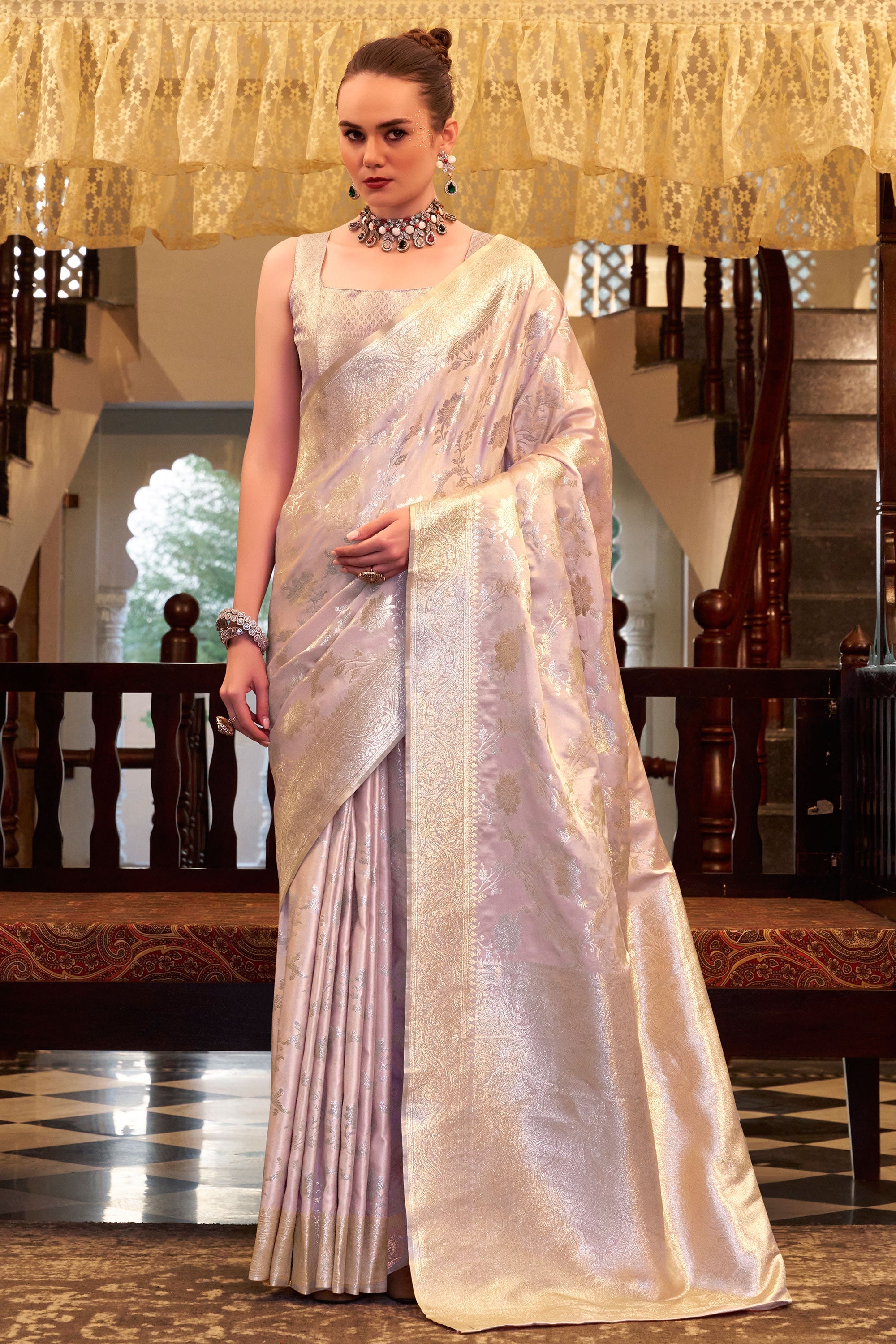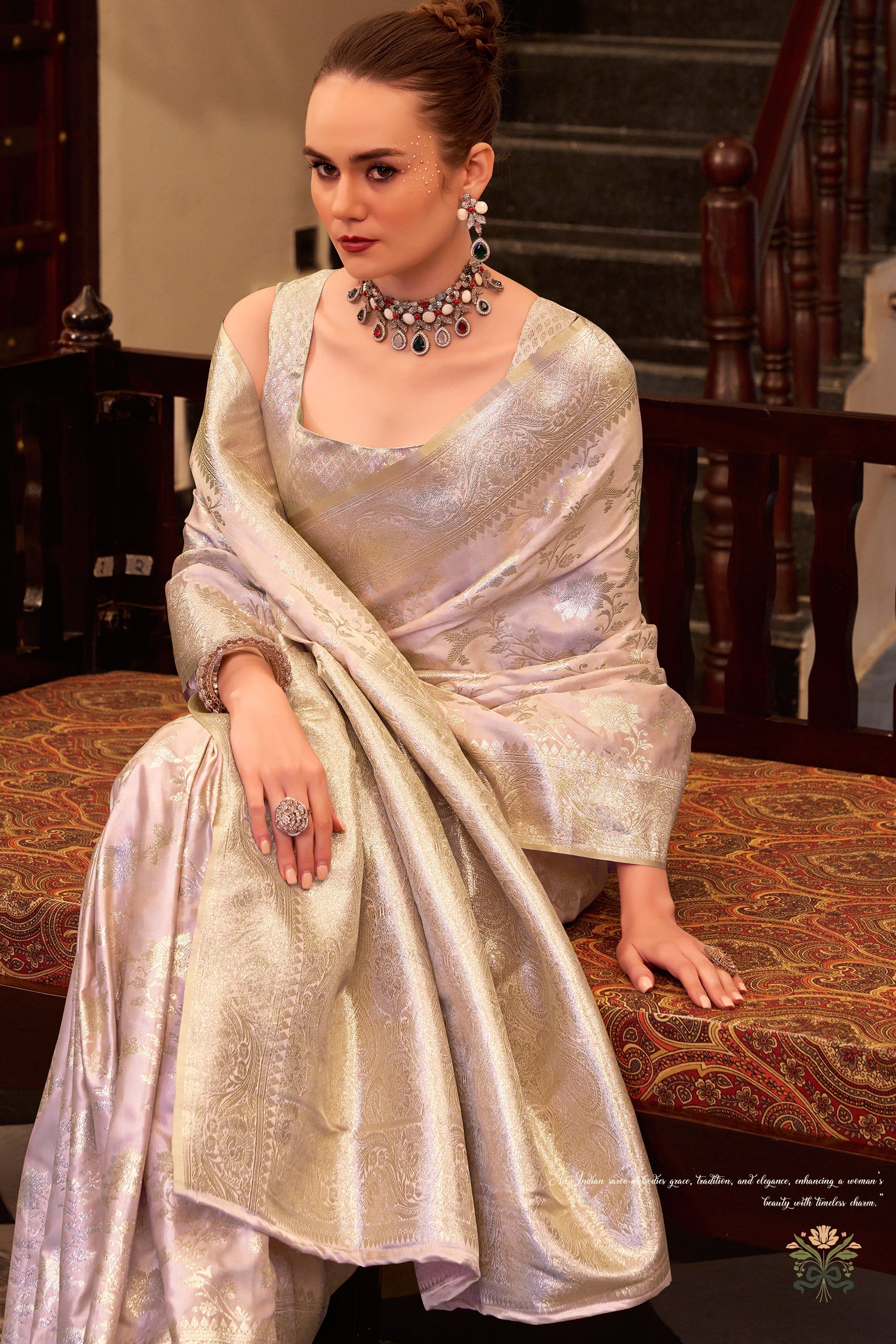 Lavender Satin Silk Zari Weaving Work Sangeet Wear Saree