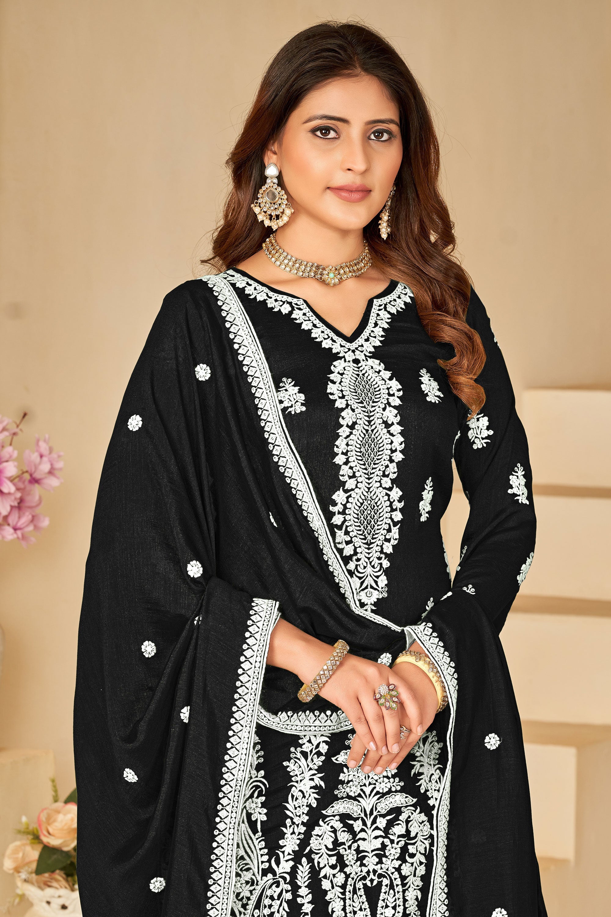 Lovely Art Silk Fabric Palazzo Salwar Suit In Black Color