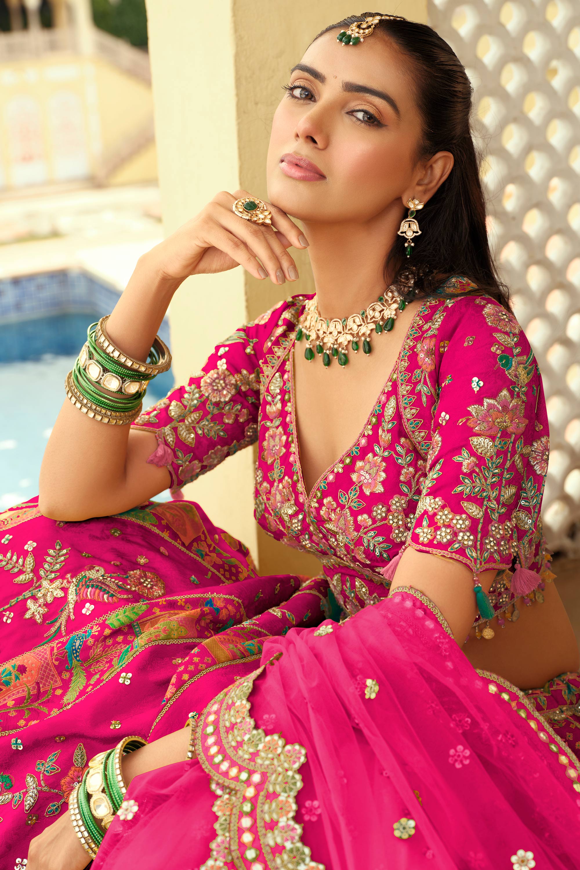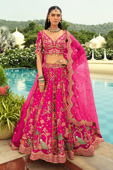 Magenta Embroidered Designer Readymade Lehenga With Blouse
