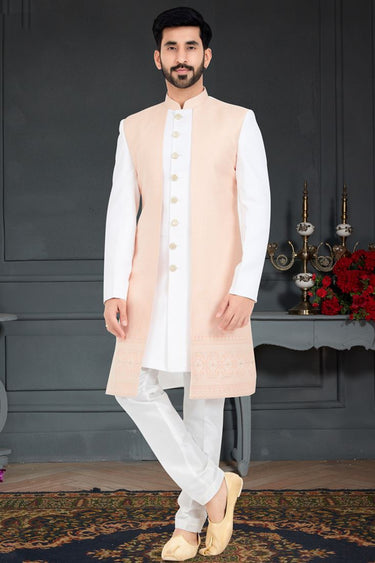 Majestic White Color Jacquard Italian Indo Western