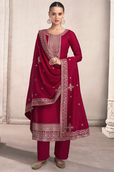 Maroon Color Chinon Fabric Divine Palazzo Suit