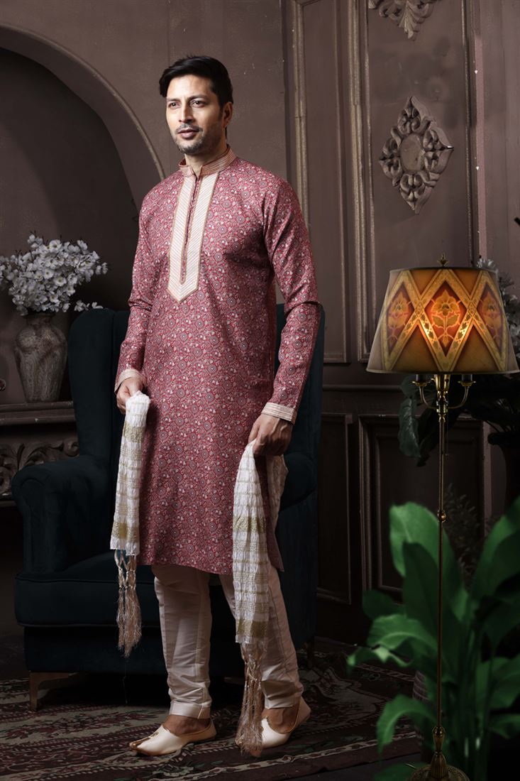 Maroon Color Cotton Fabric Festive Wear Designer Readymade Kurta Pyjama For Men