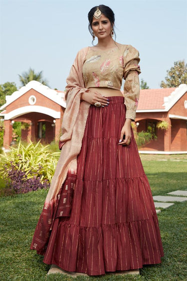 Maroon Color Cotton Fabric Sangeet Wear Lehenga