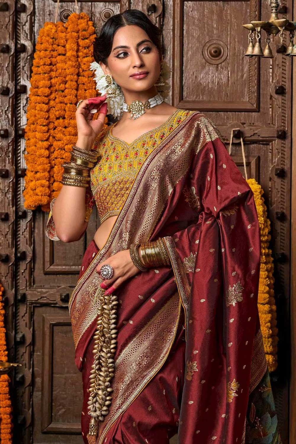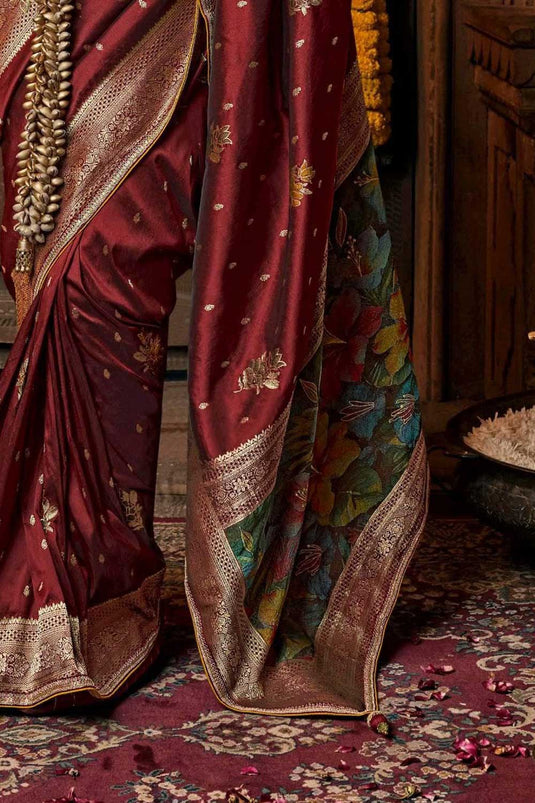 Maroon Color Graceful Lace Border Work & Heavy Pallu Saree