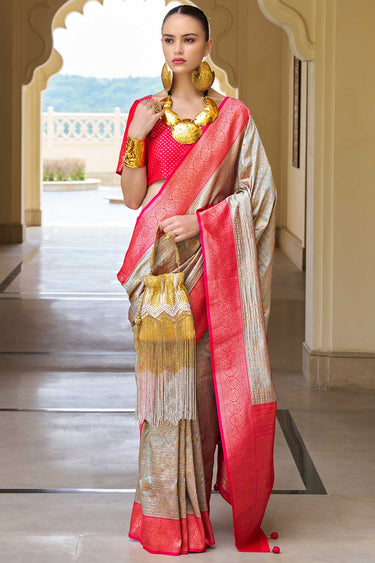 Marvellous Weaving Work On Banarasi Silk Saree In Light Cyan Color