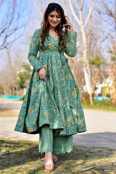 Marvelous Cotton Silk Fabric Festival Wear Digital Printed Kurti With Bottom In Sea Green Color