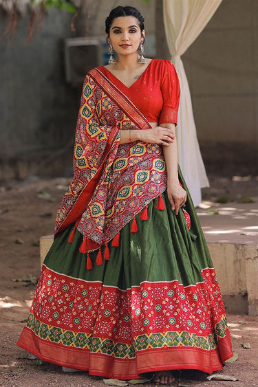 Mehendi Green Color Dola Silk Fabric Lehenga With Foil Printed Work