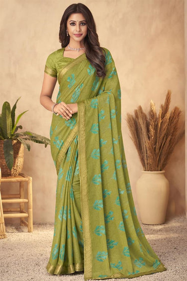 Mehendi Green Color Georgette Saree With Bewitching Printed Work