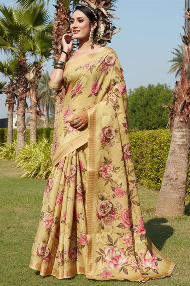 Mesmeric Yellow Color Festive Look Saree In Cotton Silk Fabric