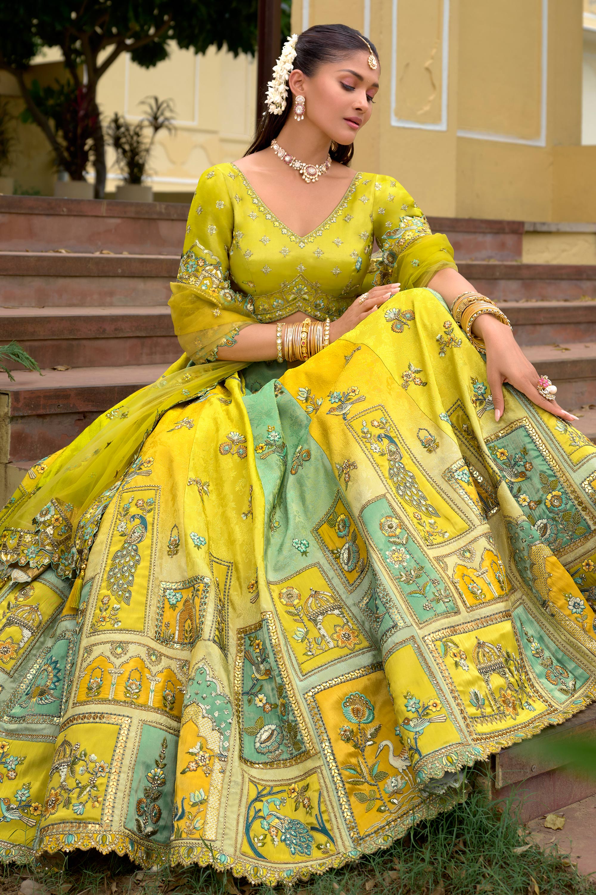 Multi Color Charm Wedding Wear Embroidered Lehenga Choli
