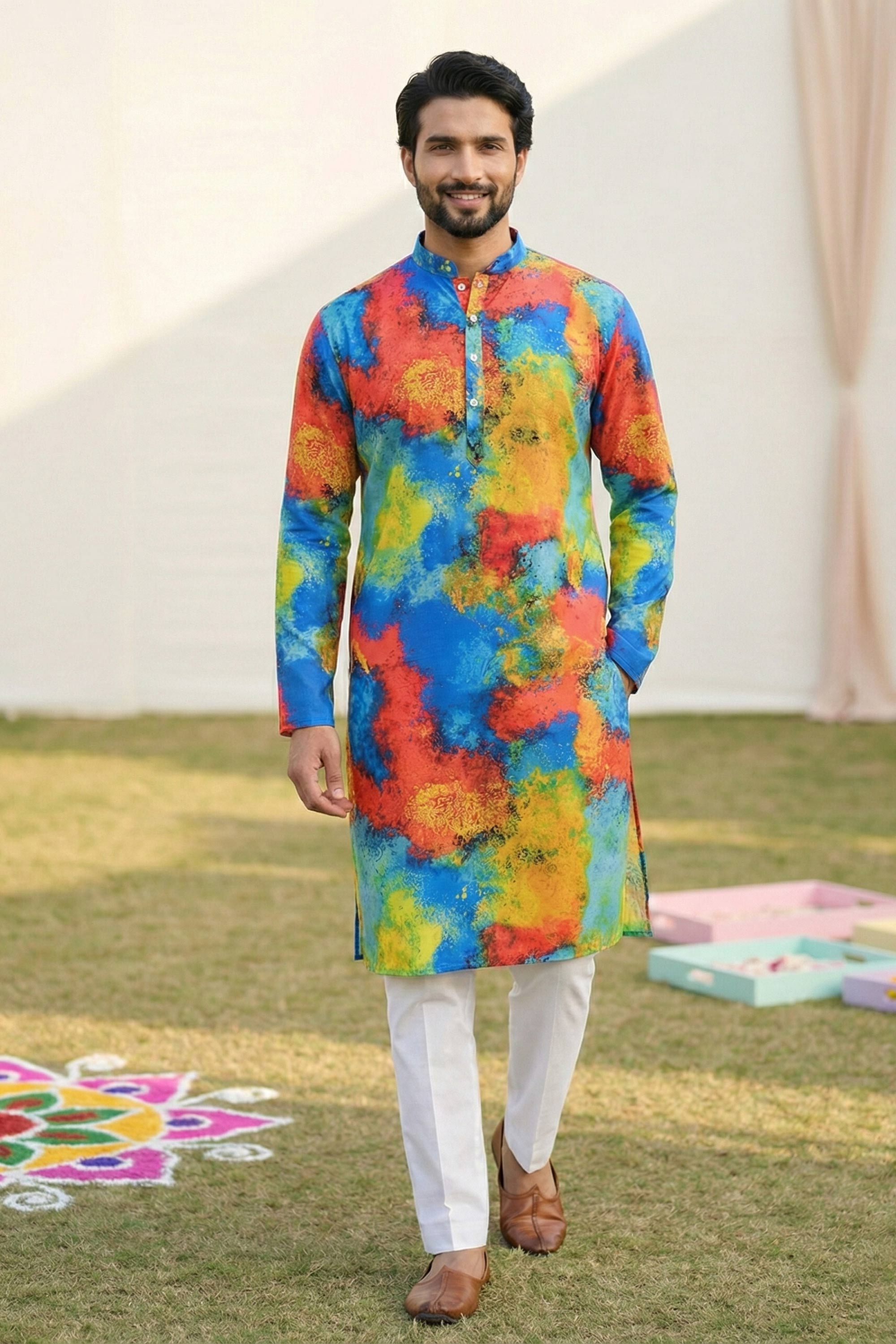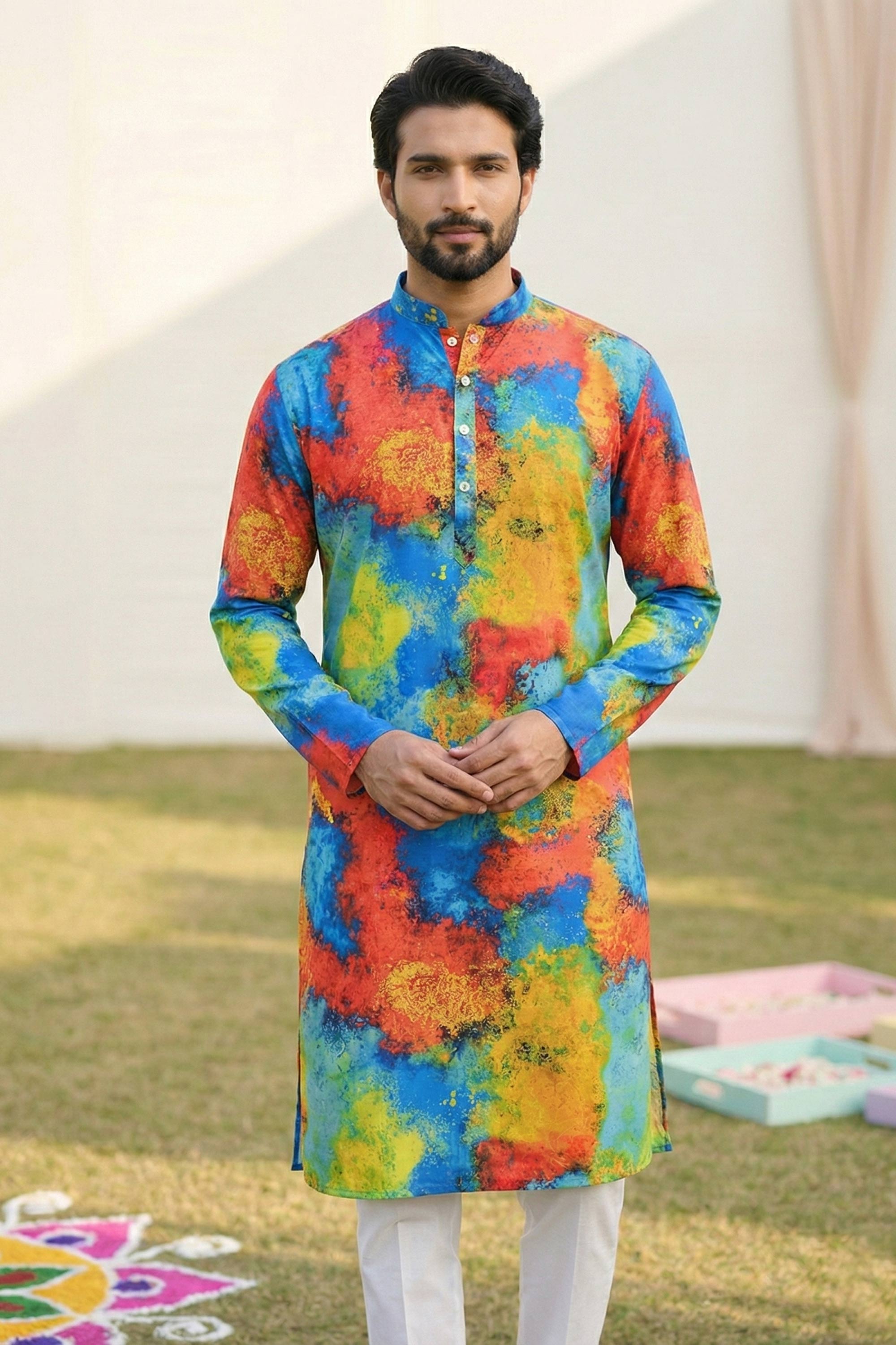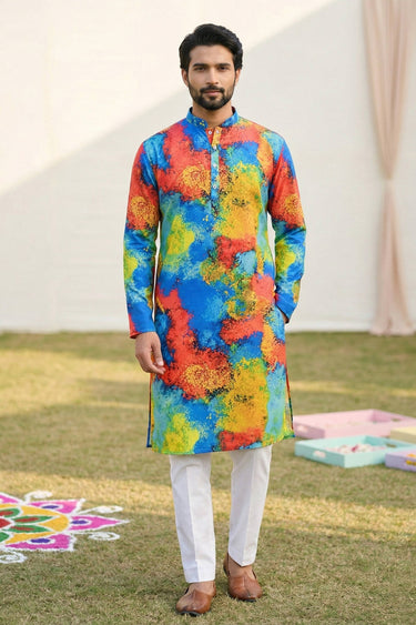 Multi Color Festive Wear Cotton Fabric Readymade Kurta Pyjama For Men