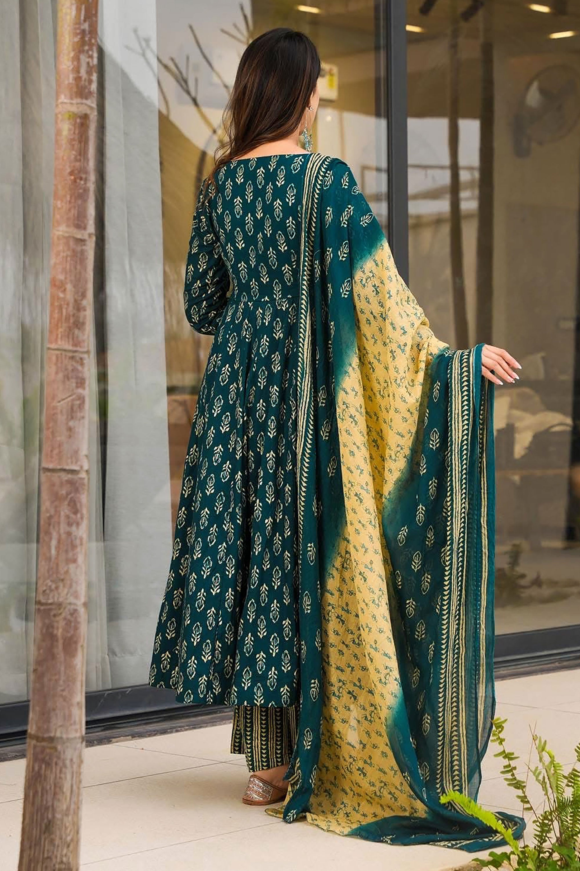 Muslin Printed Teal Trendy Readymade Anarkali Salwar Kameez