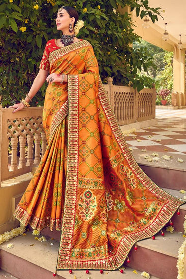Mustard Color Patola Silk Fabric Wedding Wear Imposing Saree