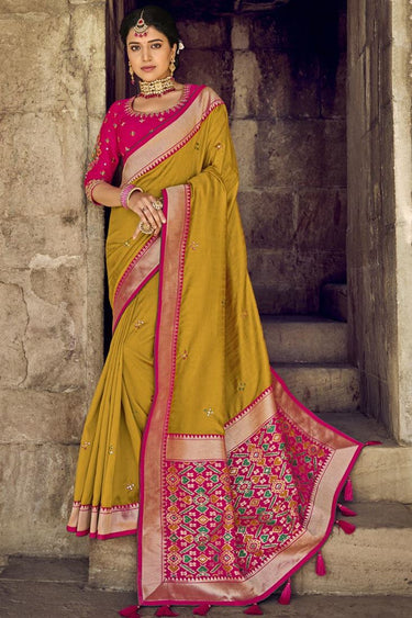 Mustard Color Weaving Work Glamorous Banarsi Style Silk Saree