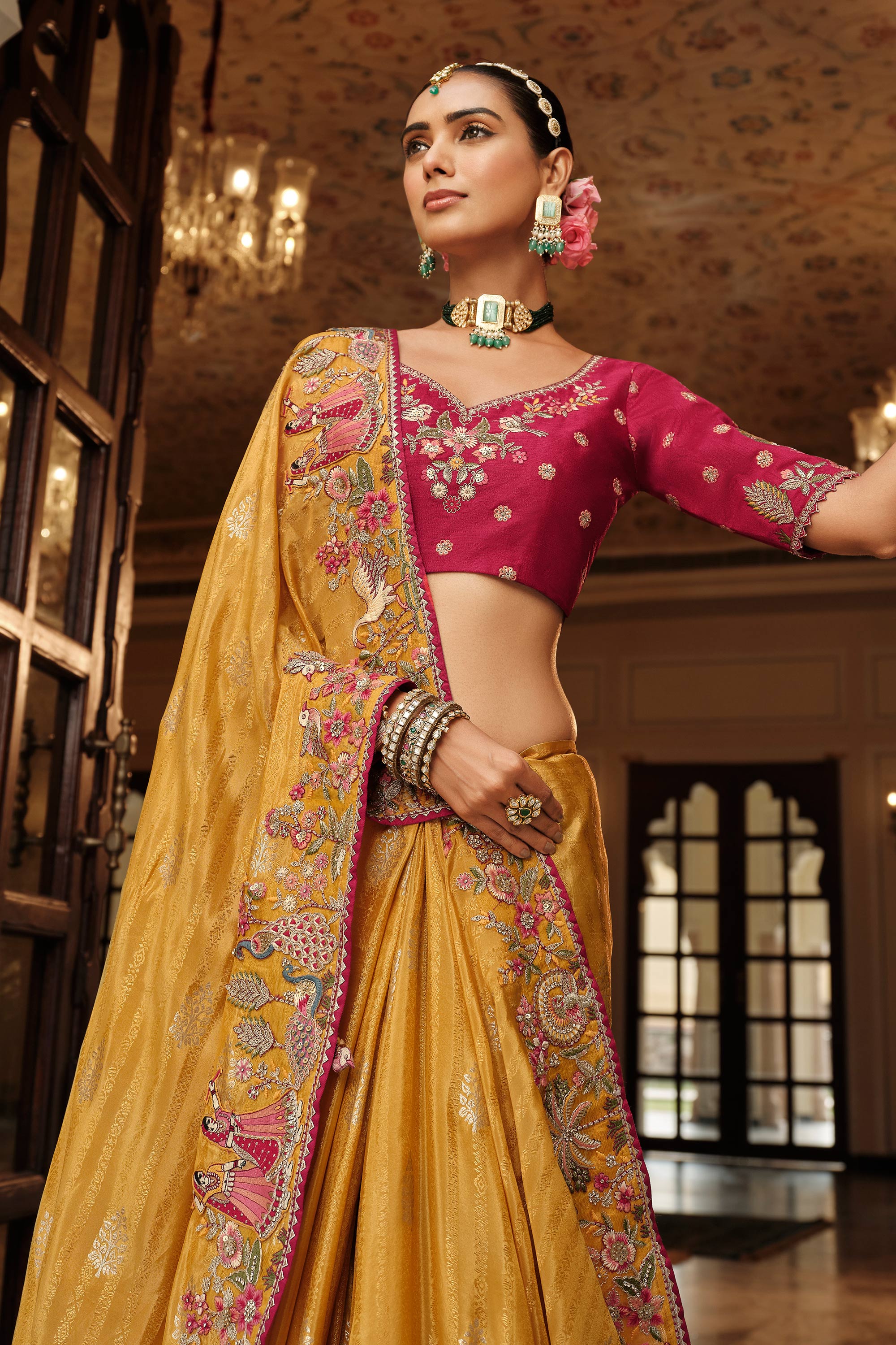 Mustard Function Wear Viscose Jacquard Embroidered Border Work Saree