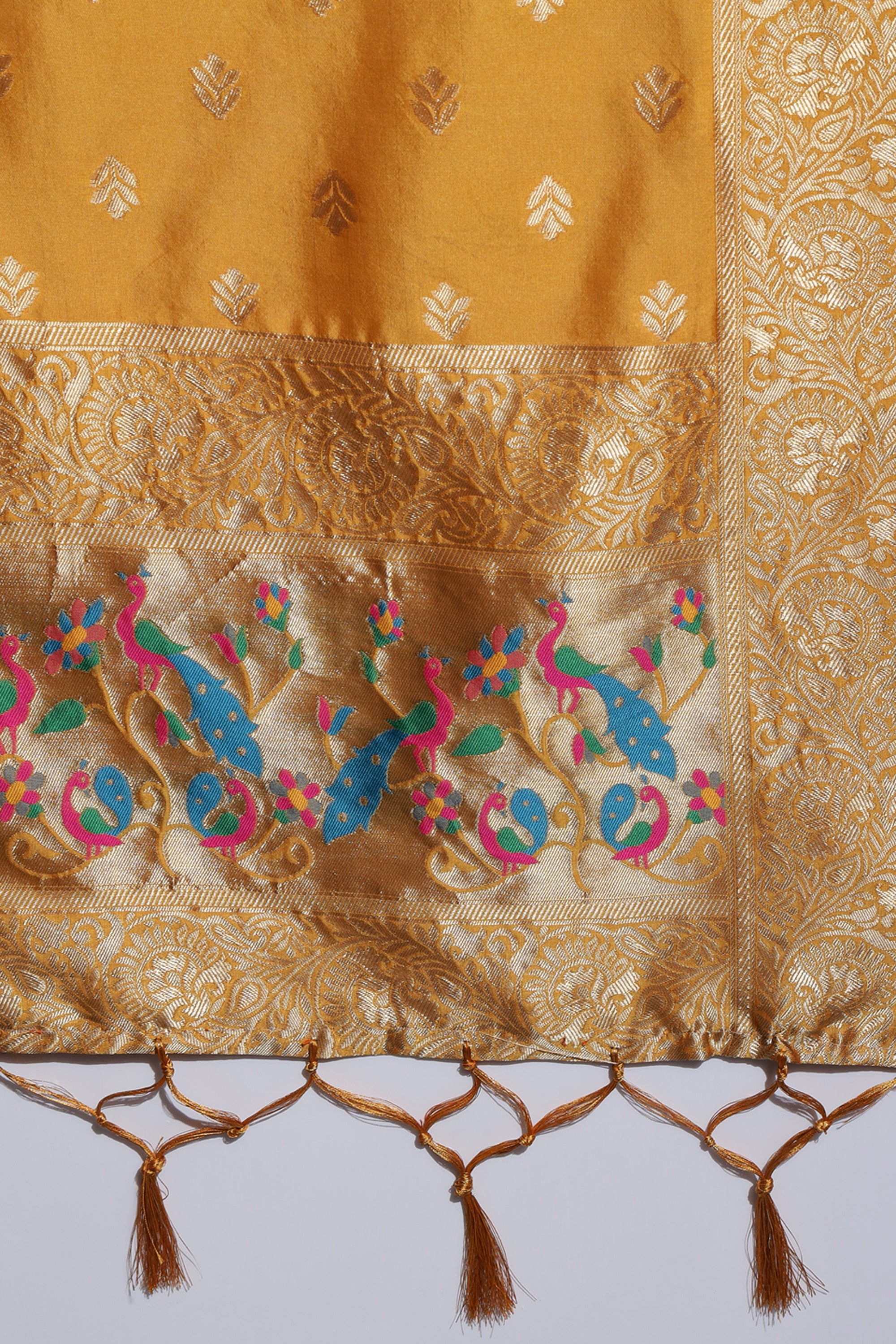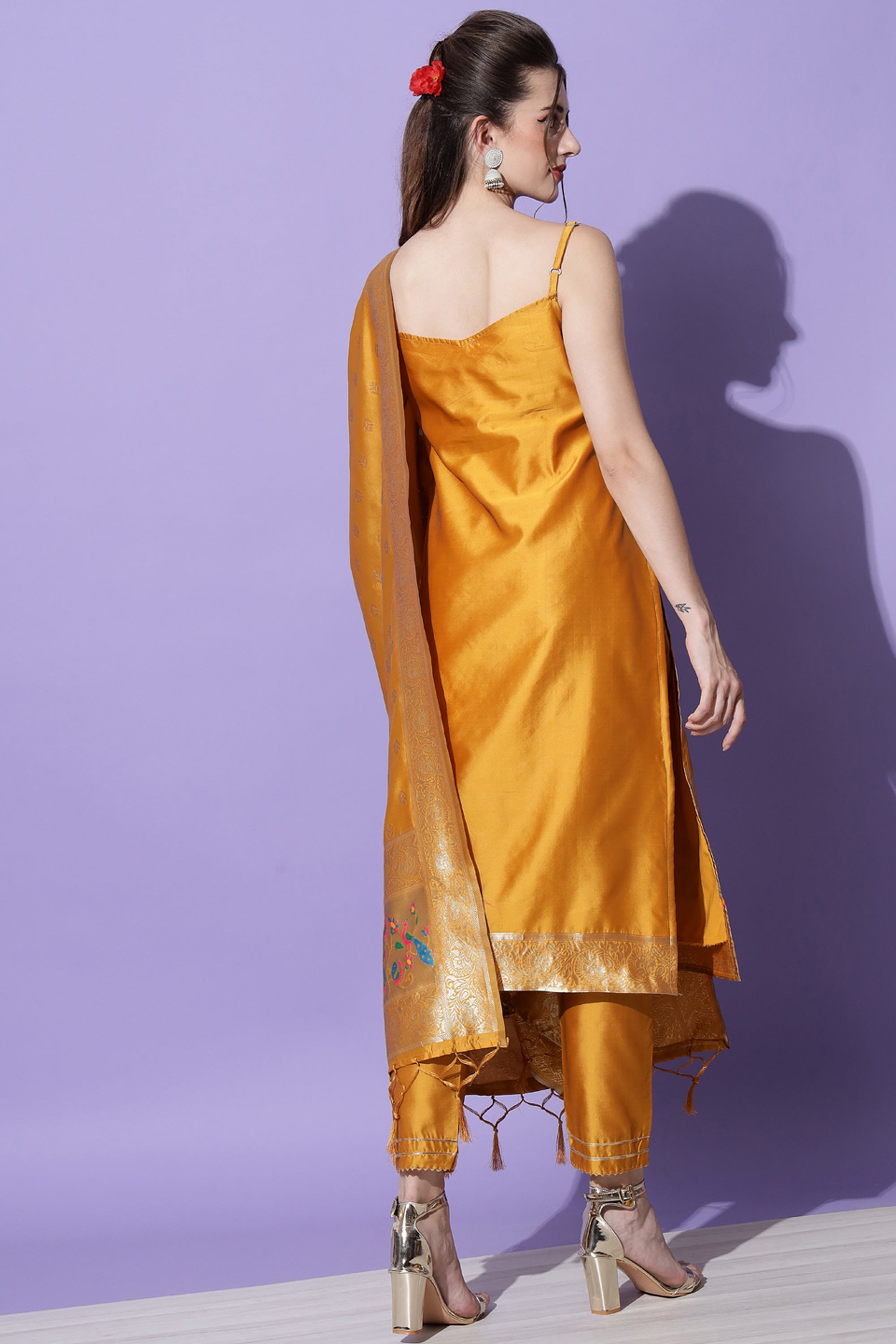 Mustard Jacquard Silk Weaving Work Salwar Kameez With Banarasi Silk Dupatta