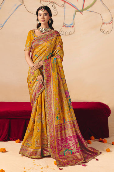 Mustard Sangeet Wear Silk Fabric Weaving Work Saree