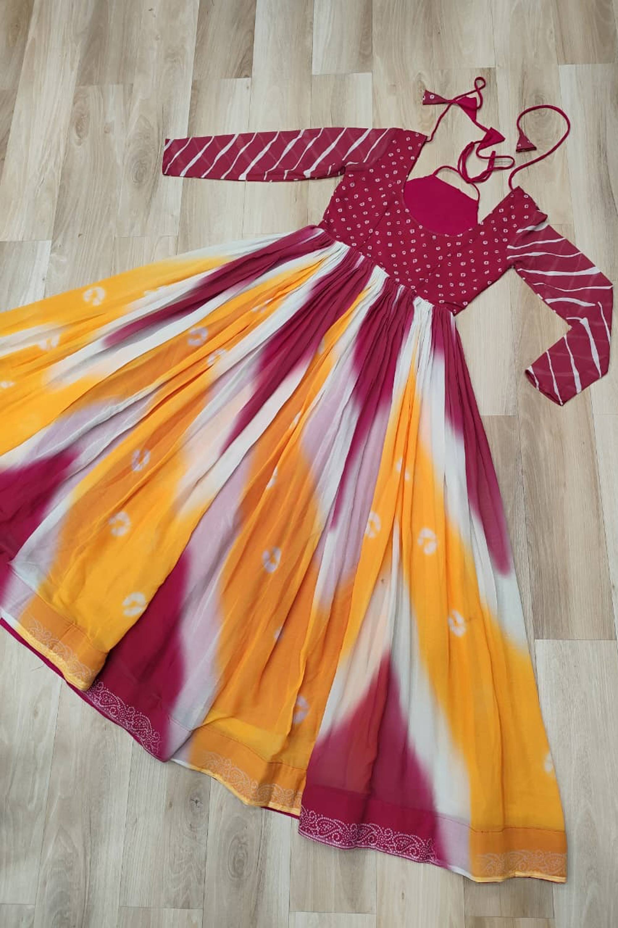 Navratri Special Georgette Ethnic Bandhani Print Gamthi Touch Gown