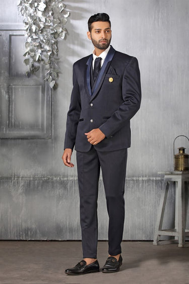 Navy Blue Color Fancy Fabric Coveted Coat Suit