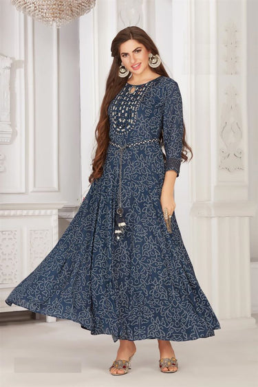 Navy Blue Color Muslin Fabric Function Wear Redymade Kurti