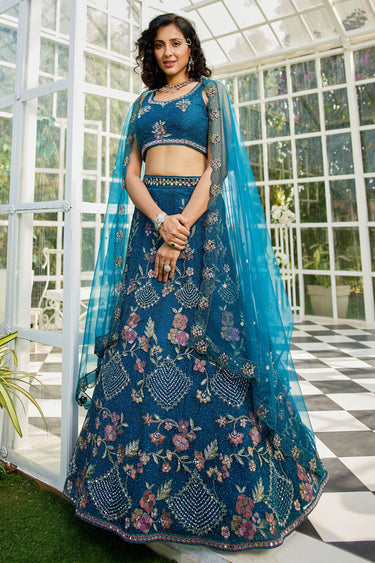 Navy Blue Color Net Fabric Heavy Embroidered Wedding Wear Lehenga Choli