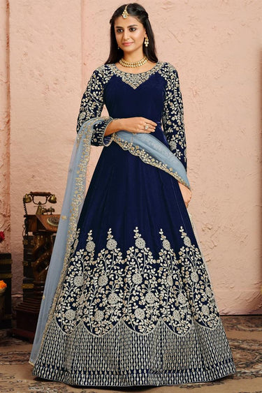 Navy Blue Color Party Wear Embroidered Velvet Fabric Designer Anarkali Suit