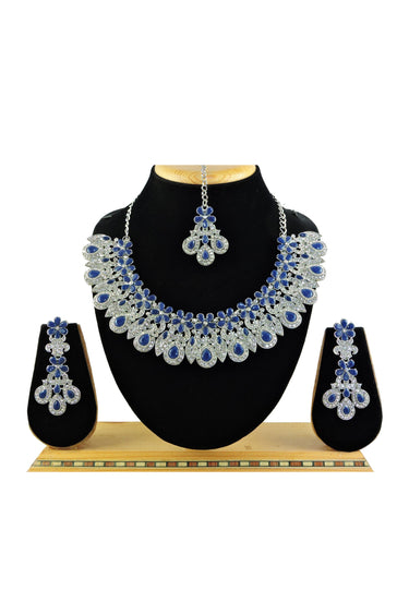 Navy Blue Color Princely Alloy Necklace with Earrings and Mang Tikka