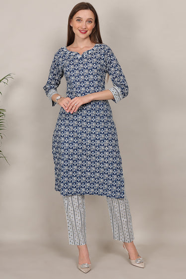 Navy Blue Color Readymade Casual Plus Size Kurti In Cotton Fabric