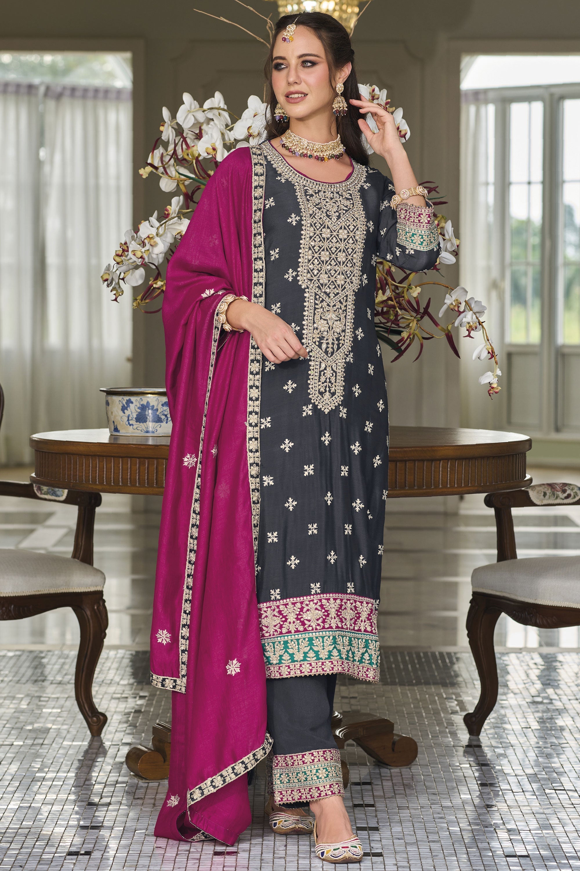 Experience the fusion of comfort and elegance with our Wedding Wear Embroidered Art Silk Fabric Designer Readymade Straight Cut Salwar Kameez. Its richly embroidered detail, combined with high-quality art silk fabric, offers an exquisite look that can make heads turn on your special day. A readymade straight cut ensures you get the right fit, eliminating any concerns about fitting issues.